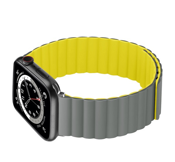 Phoner Rever Apple Watch forgatható mágneses szilikon szíj, 41/40/38mm, S/M, szürke/sárga