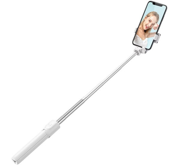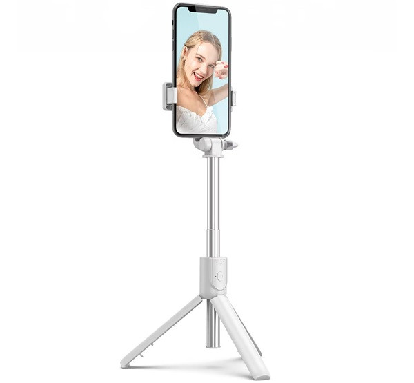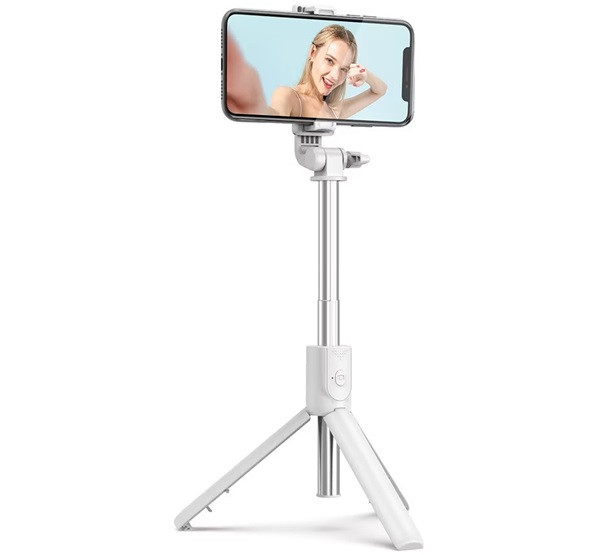 Prémium selfie bot, 19 - 70 cm, forgatható, exponáló gombbal, bluetooth-os, v4.0, tripod, R1, fehér