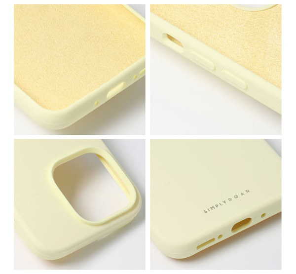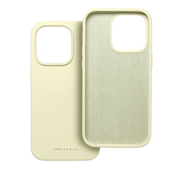 Roar Apple iPhone 15 Pro prémium szilikon tok velúr béléssel, világossárga