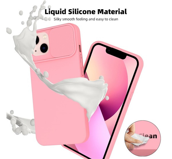 Slide Apple iPhone 13 Pro, kameravédős szilikon tok, rózsaszín
