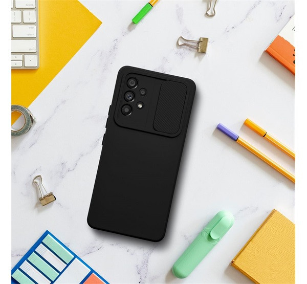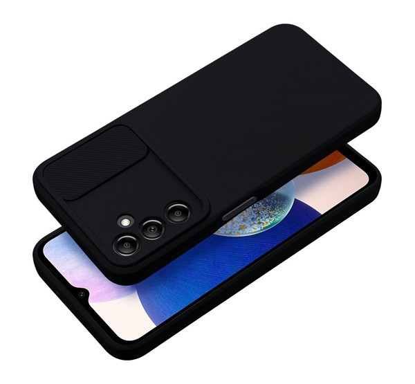 Slide Samsung Galaxy A14 5G/A14 4G, kameravédős szilikon tok, fekete