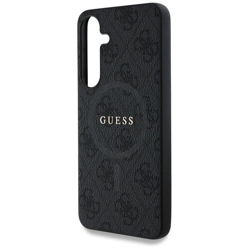 Guess Leather 4G Colored Ring Classic Logo MagSafe Samsung Galaxy S25 kemény hátlap tok, fekete