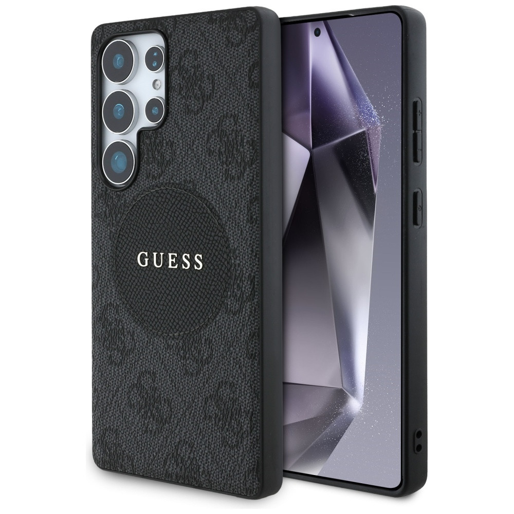 Guess 4G Round Patch Classic Logo Samsung Galaxy S25 Ultra MagSafe kemény hátlap tok, fekete