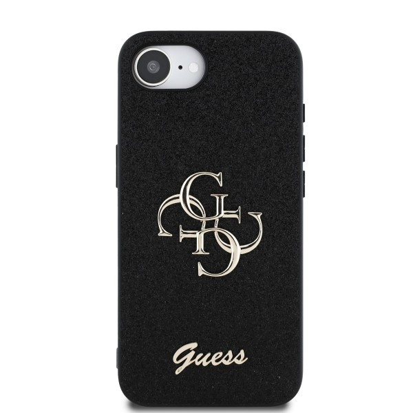 Guess PU Fixed Glitter 4G Metal Logo Apple iPhone 17e / iPhone 16e hátlap tok, fekete