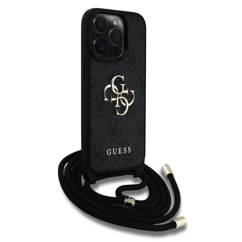 Guess PU 4G Metal Logo Crossbody Strap iPhone 16 Pro Max hátlap tok, fekete