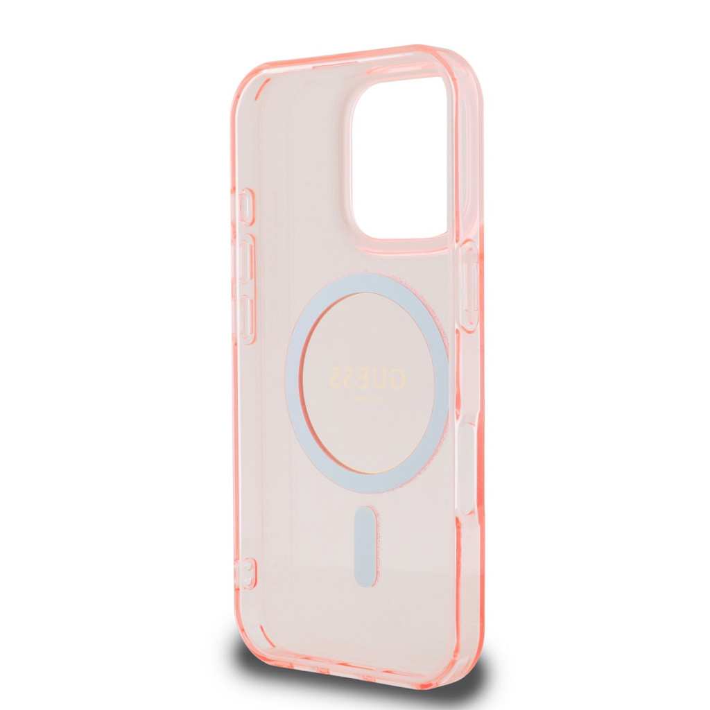 Guess IML Glitter Ring Apple iPhone 16 Pro Magsafe kompatibilis hátlap tok, rózsaszín