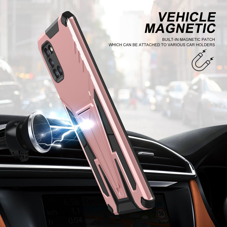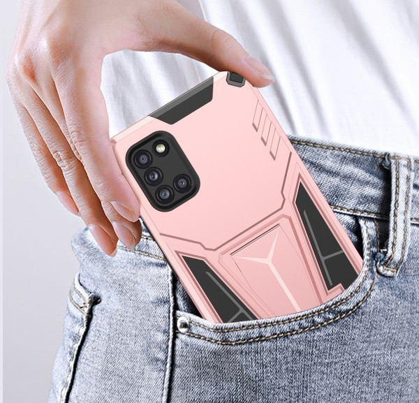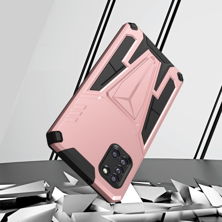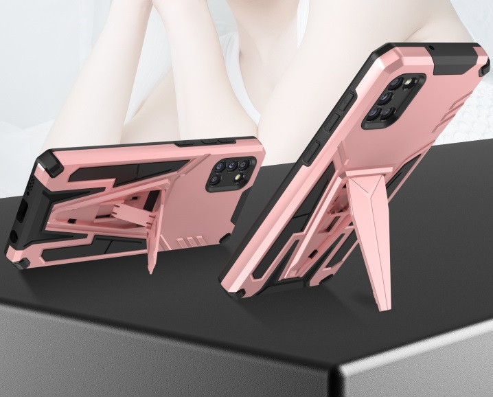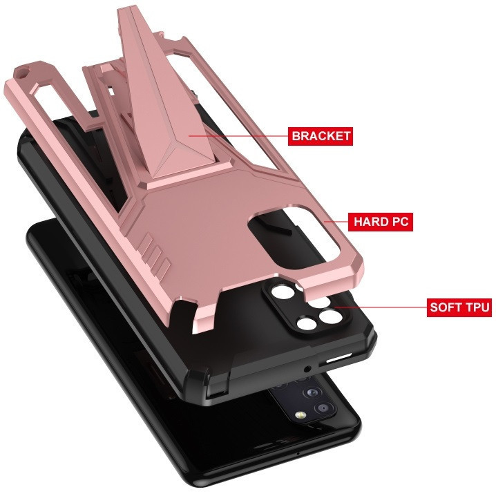 Apple iPhone 14 Pro Max, Műanyag hátlap védőtok szilikon belső, közepesen ütésálló, kitámasztóval, Wooze Supportive Care, vörösarany
