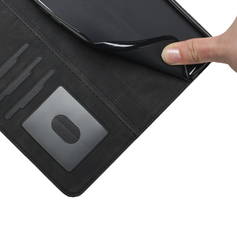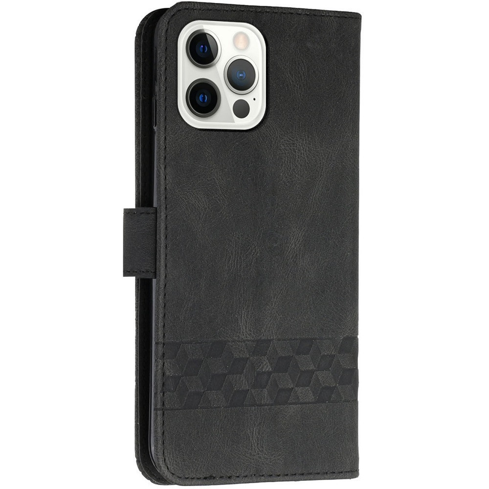 Apple iPhone 14 Pro Max, Oldalra nyíló tok, stand, kártyatartóval, kézpánttal, Wooze Illusion, fekete