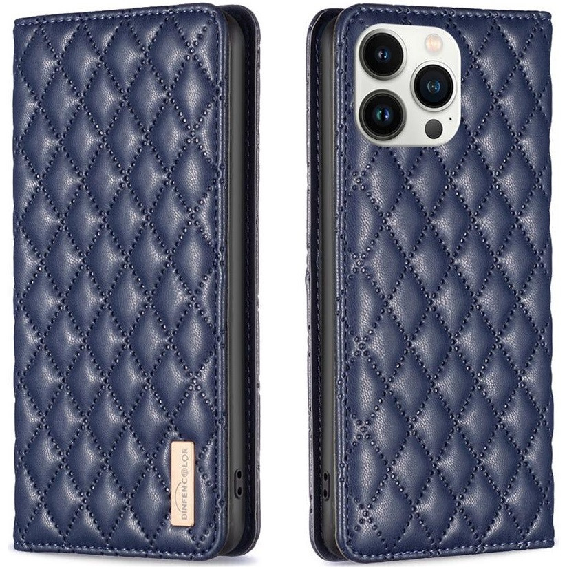 Samsung Galaxy M23 5G SM-M236B, Oldalra nyíló tok, stand, kártyatartóval, 3D rombusz minta, Wooze Pillow, kék