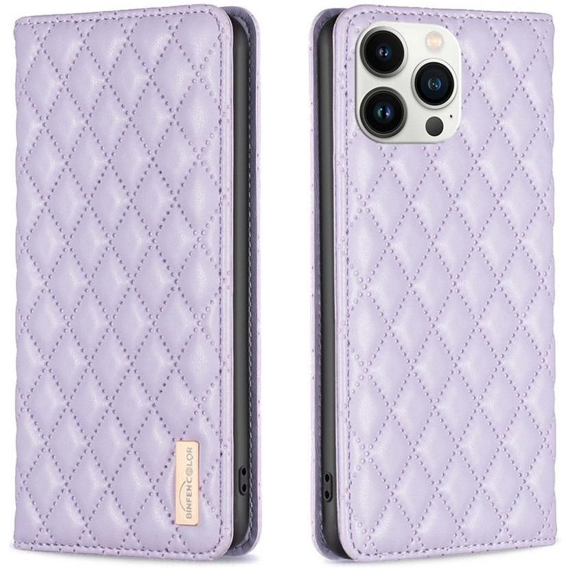 Motorola Moto G62 5G, Oldalra nyíló tok, stand, kártyatartóval, 3D rombusz minta, Wooze Pillow, lila