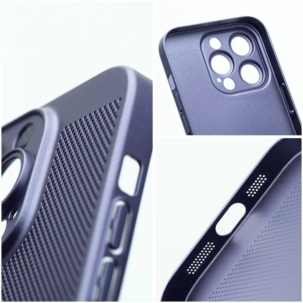 Apple iPhone 15 Pro, Műanyag hátlap védőtok, légáteresztő, lyukacsos minta, Breezy, kék