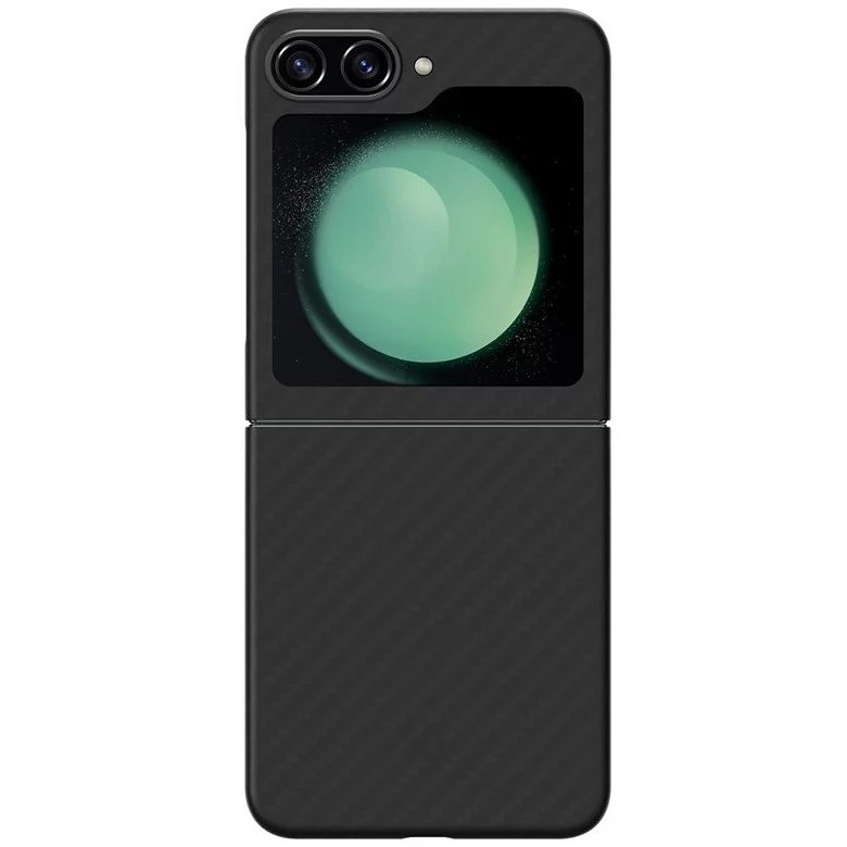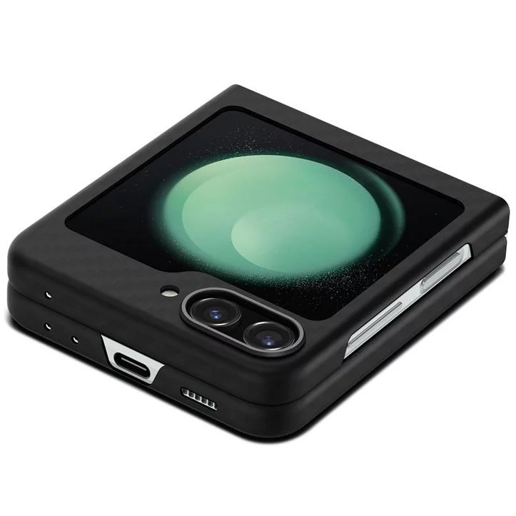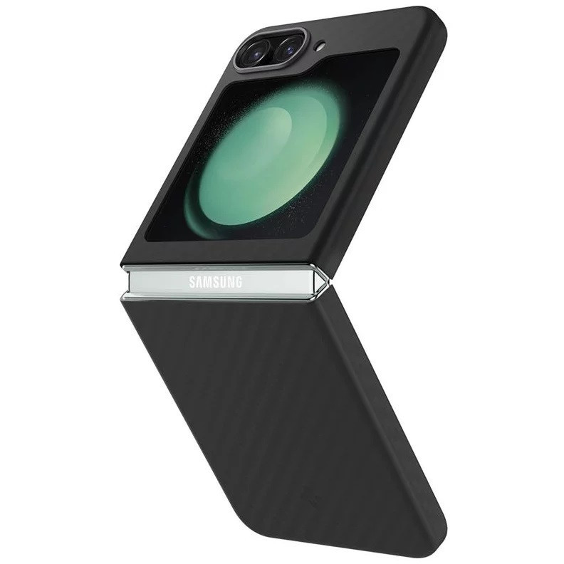 Samsung Galaxy Z Flip5 SM-F731B, Műanyag hátlap védőtok, közepesen ütésálló, ultravékony, Aramid bevonat, karbon minta, Spigen Airskin Pro, fekete