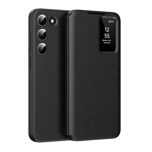 Samsung Galaxy S24 SM-S921, Oldalra nyíló tok, hívás mutatóval, kártyatartóval, Smart View Cover, fekete