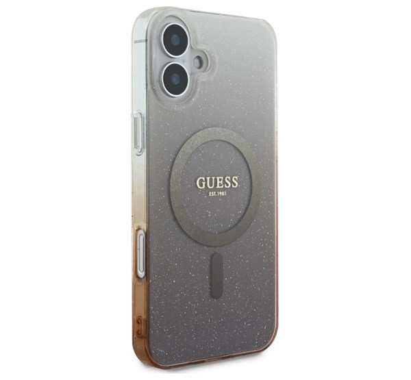 Guess IML Glitter Gradient iPhone 16 Plus MagSafe kemény hátlap tok, barna GUHMP16MHGRCELW