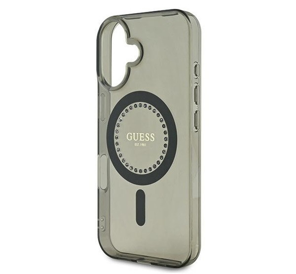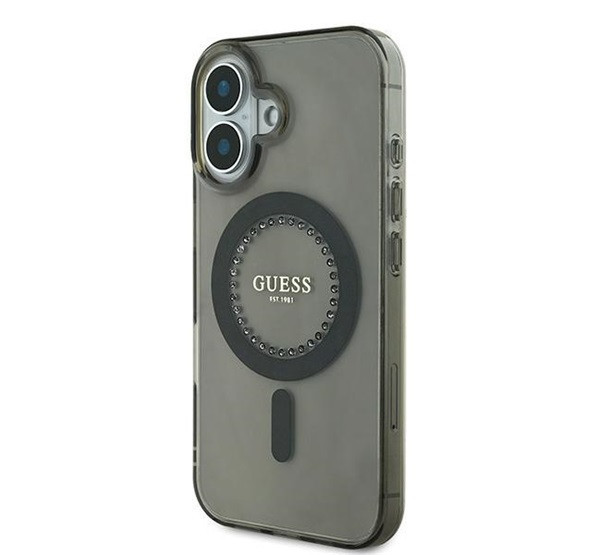 Guess IML Rhinestones MagSafe iPhone 16 Plus kemény hátlap tok, fekete GUHMP16MPFTDTEK