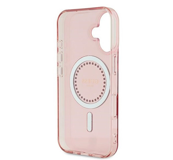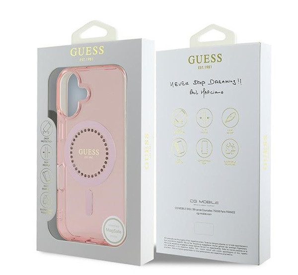 Guess IML Rhinestones MagSafe iPhone 16 Plus kemény hátlap tok, rózsaszín GUHMP16MPFTDTEP