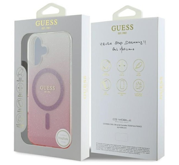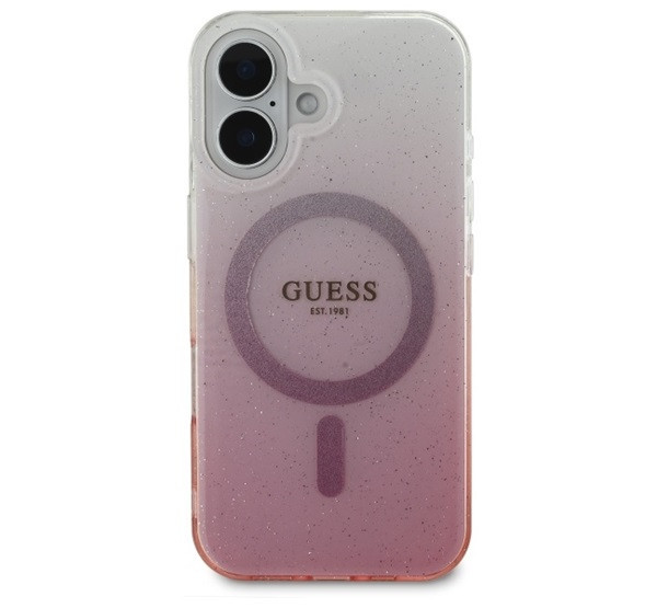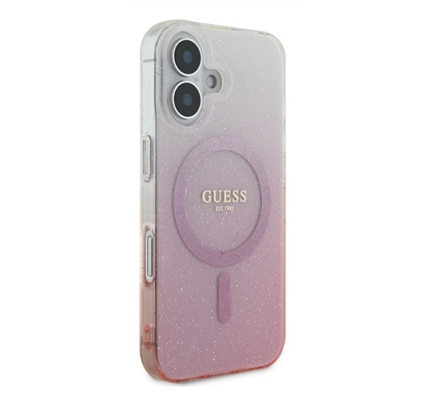 Guess IML Glitter Gradient iPhone 16 MagSafe kemény hátlap tok, rózsaszín GUHMP16SHGRCELP