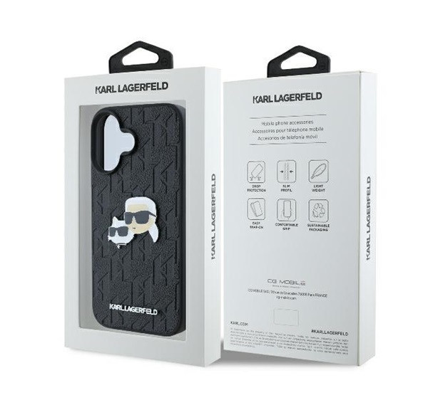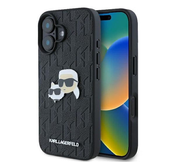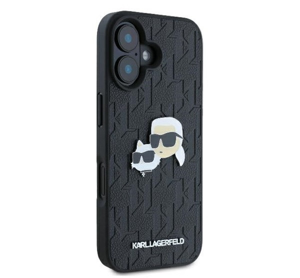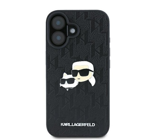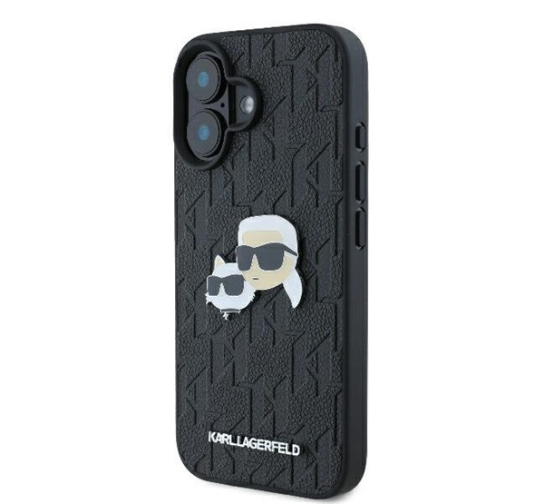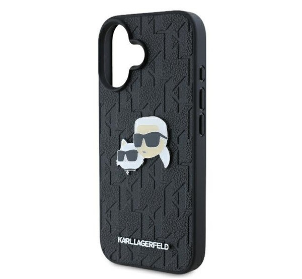 Karl Lagerfeld Monogram Karl&Chaoupette Head Pin iPhone 16 kemény hátlap tok, fekete KLHCP16SPGKLKCPK