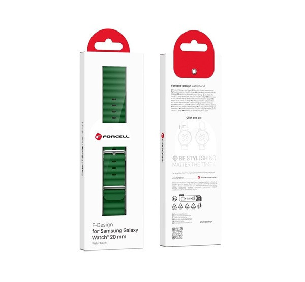A Forcell F-Design szíjat nem csak klasszikus dizájnja, hanem sokoldalúsága is megkülönbözteti. Bármely 22 mm-es csatolási szélességű Samsung Watch órával viselhető. Továbbá minden típusú ruhatárhoz illik, a sportostól az elegánsig.