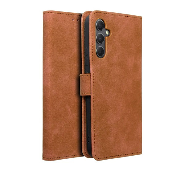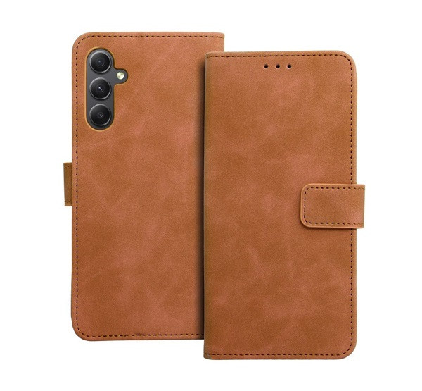 Tender Book Samsung Galaxy A34 5G flip/oldalra nyíló műbőr tok kártyatartó résszel, barna