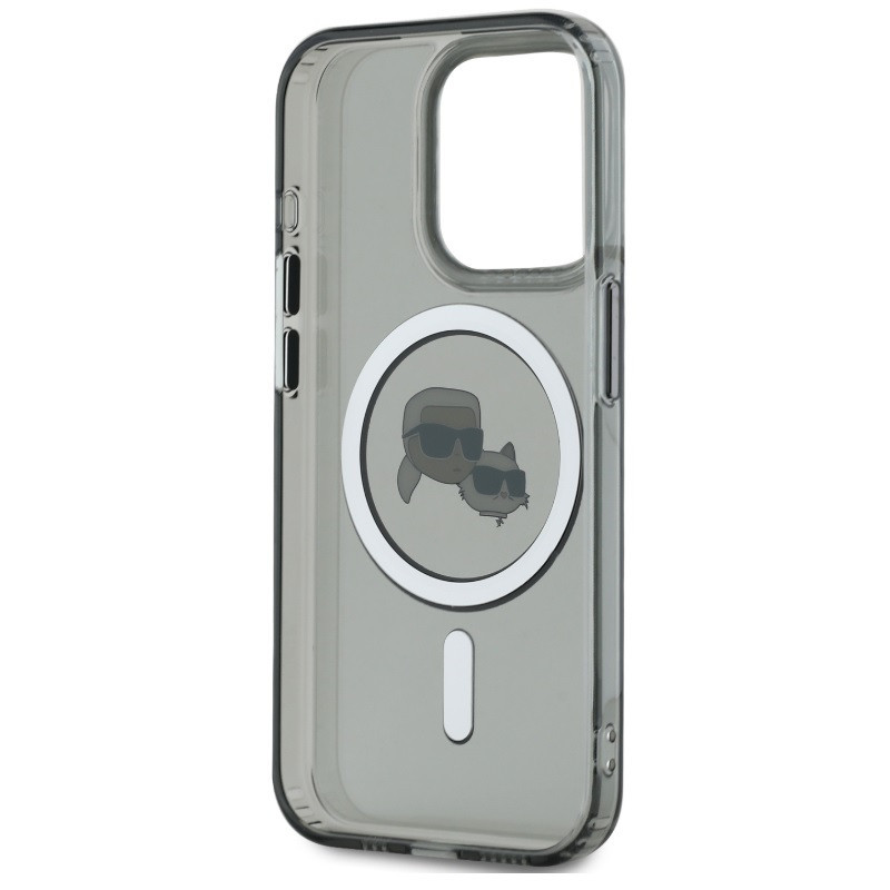 Karl Lagerfeld IML Karl & Choupette Metal Frame iPhone 15 Pro Max MagSafe tok, fekete