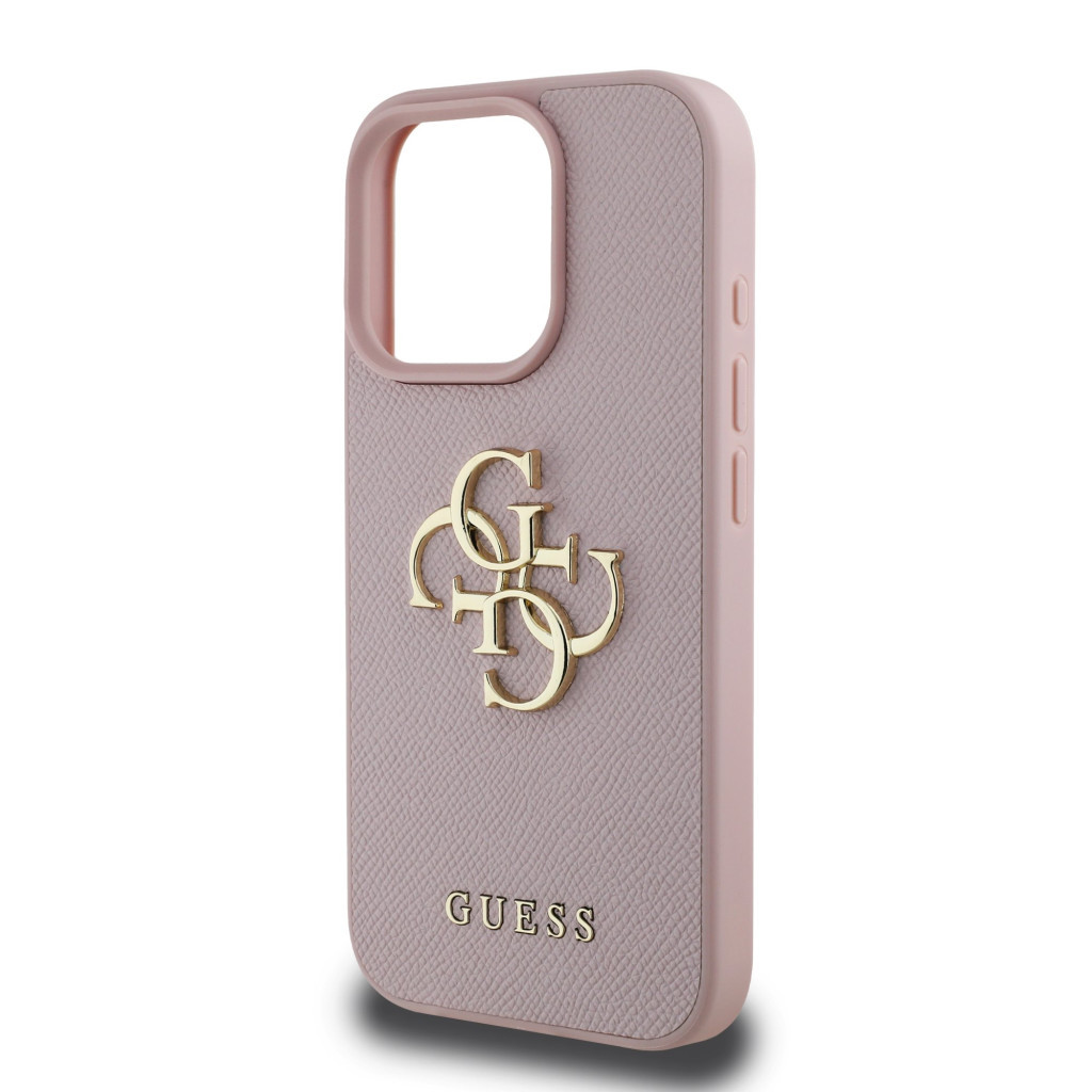 Guess PU Grained 4G Metal Logo Apple iPhone 15 Pro hátlap tok, rózsaszín