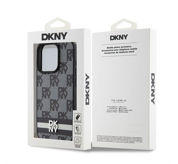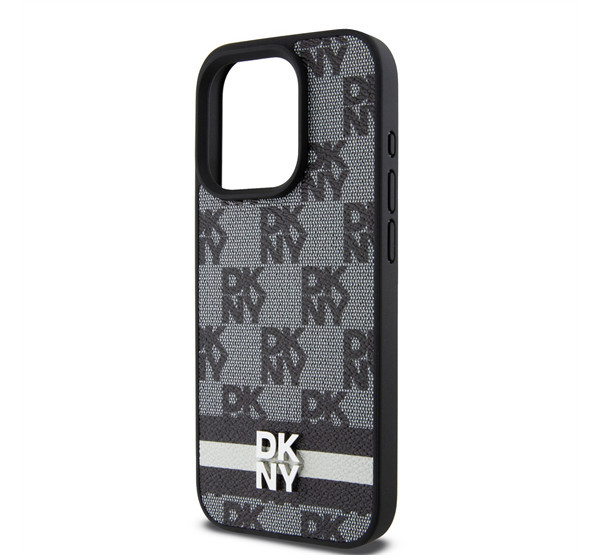 DKNY PU Leather Checkered Pattern and Stripe iPhone 14 Pro Max hátlap tok, fekete