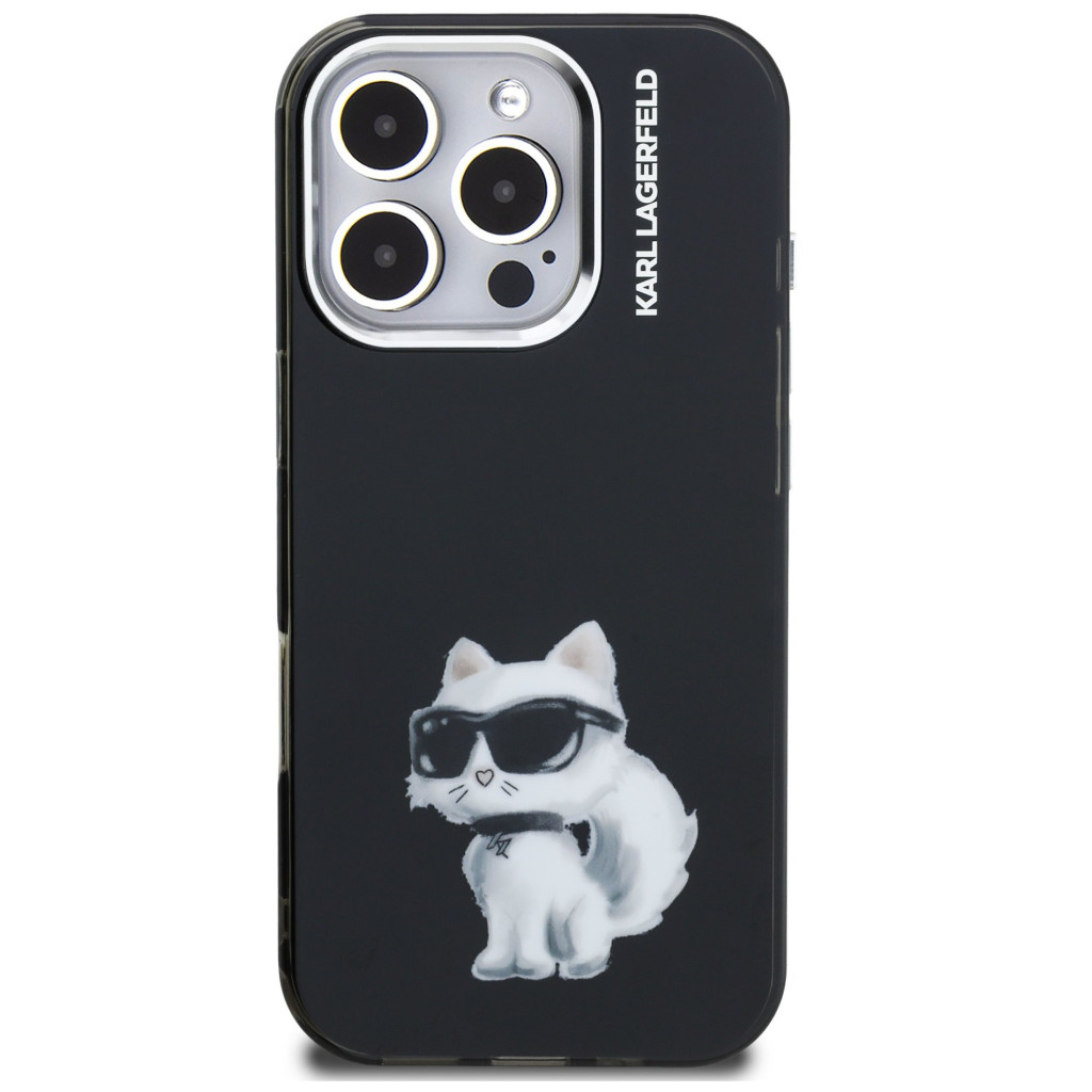 Karl Lagerfeld IML Aquarelle Choupette iPhone 15 Pro Max hátlap tok, fekete