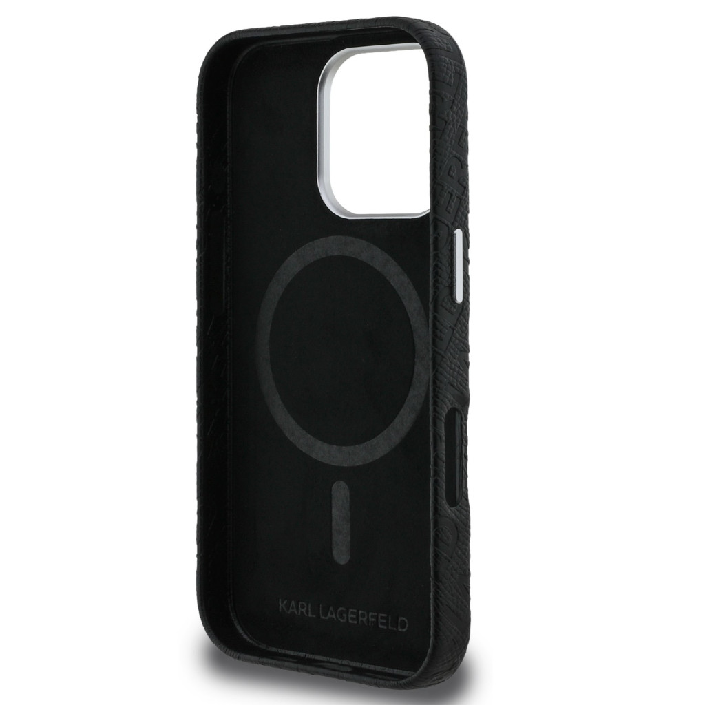 Karl Lagerfeld Grained PU Repeated Logo iPhone 16 Pro MagSafe kompatibilis hátlap tok, fekete