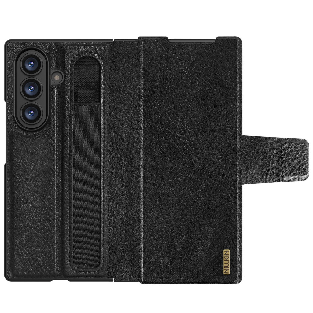 Nillkin Aoge Samsung Galaxy Z Fold 7 bőr mágneses oldalra nyíló tok, S Pen tartóval, fekete