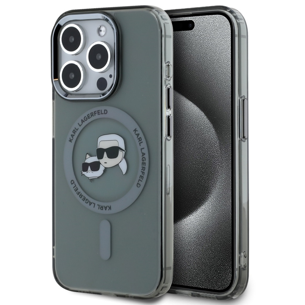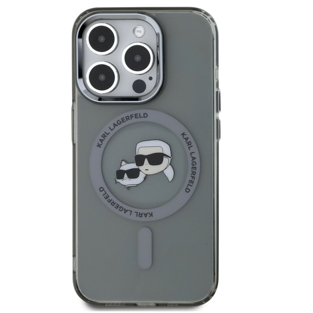 Karl Lagerfeld IML K&CH Heads Metal Frame iPhone 15 Pro MagSafe tok kameravédő peremmel, fekete