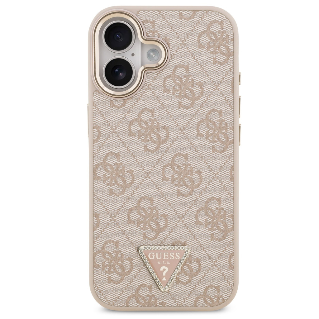 Guess PU Leather 4G Triangle Logo Gold Frame Apple iPhone 17 MagSafe hátlap tok, rózsaszín