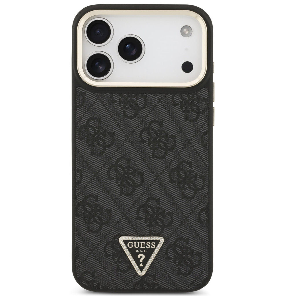 Guess PU Leather 4G Triangle Logo Gold Frame Apple iPhone 17 Pro MagSafe hátlap tok, fekete