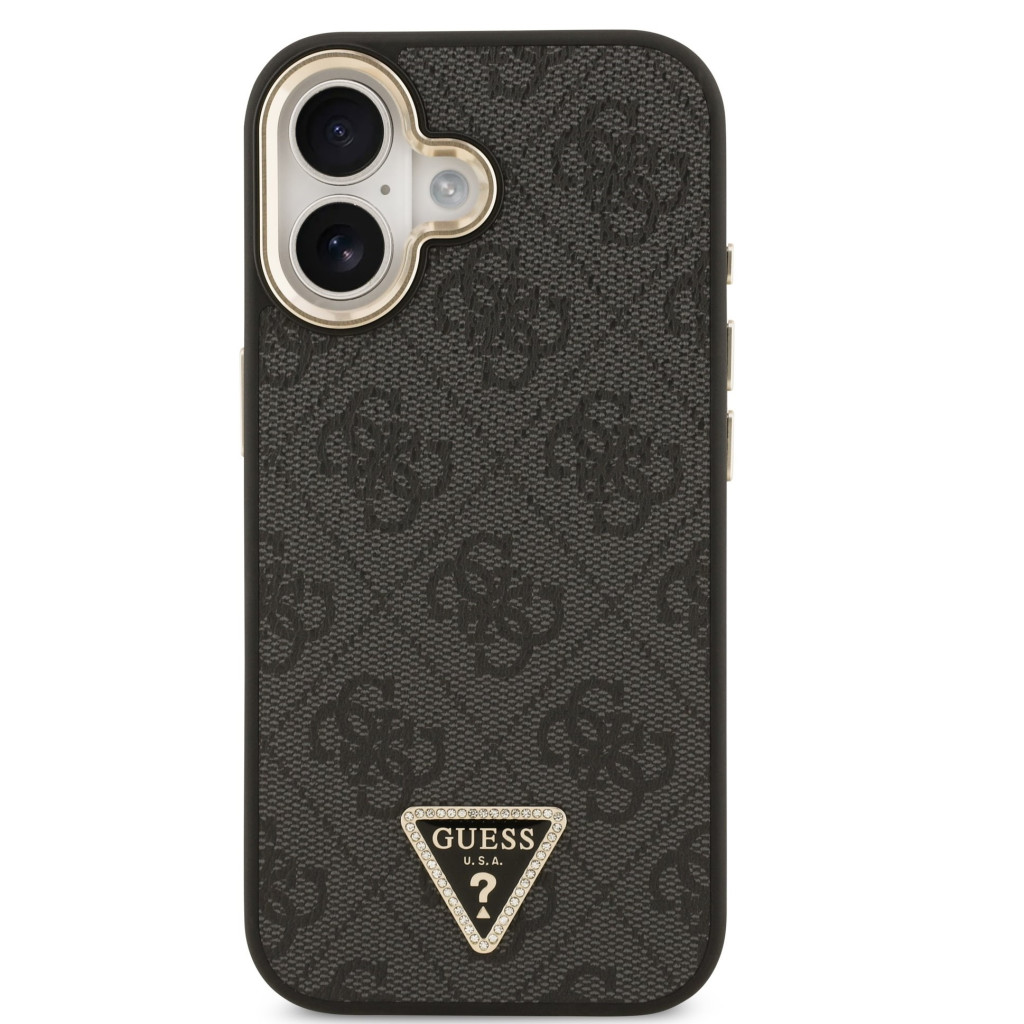 Guess PU Leather 4G Triangle Logo Gold Frame Apple iPhone 17 MagSafe hátlap tok, fekete