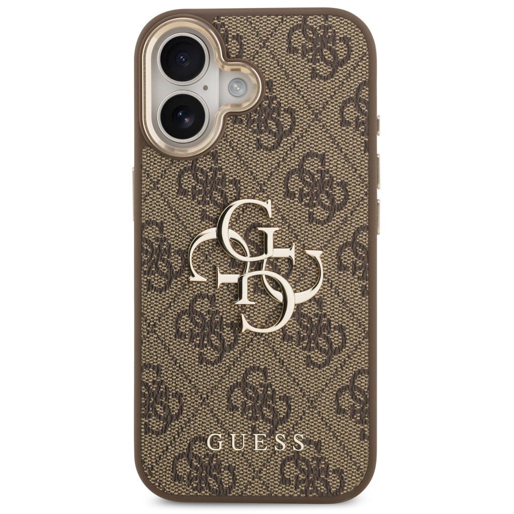 Guess PU Leather 4G Metal Logo Gold Frame Apple iPhone 17 hátlap tok, barna