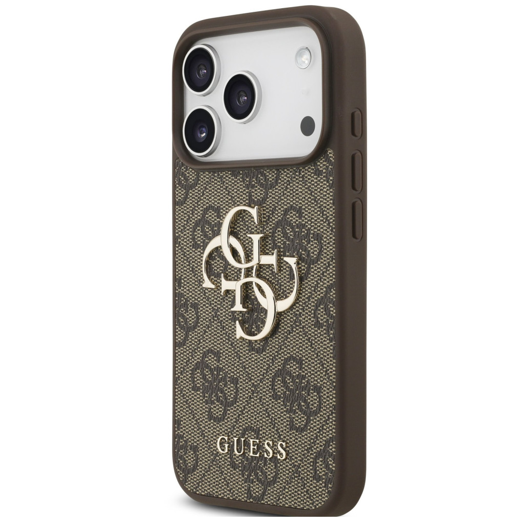 Guess PU 4G Metal Logo Strap Apple iPhone 17 Pro Max hátlap tok karpánttal, barna