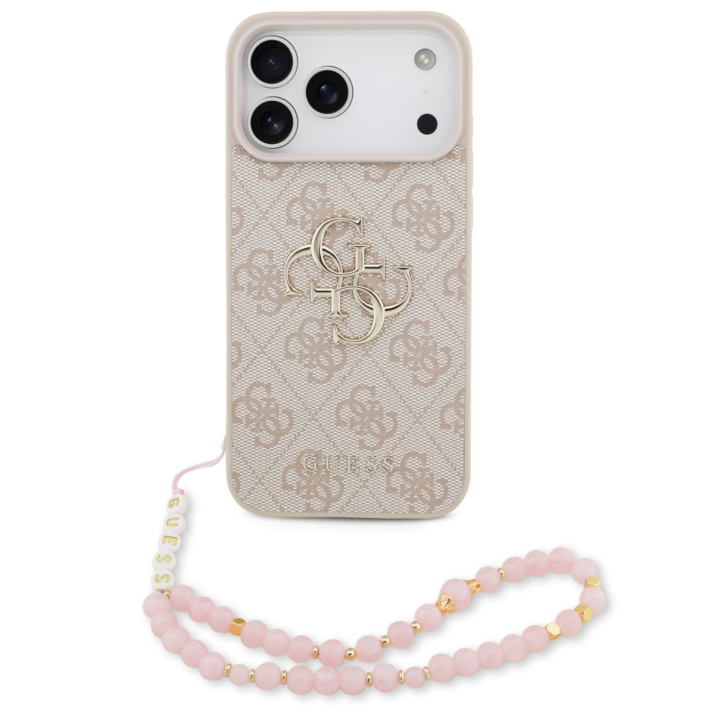 Guess PU 4G Metal Logo Strap Apple iPhone 17 Pro hátlap tok karpánttal, rózsaszín