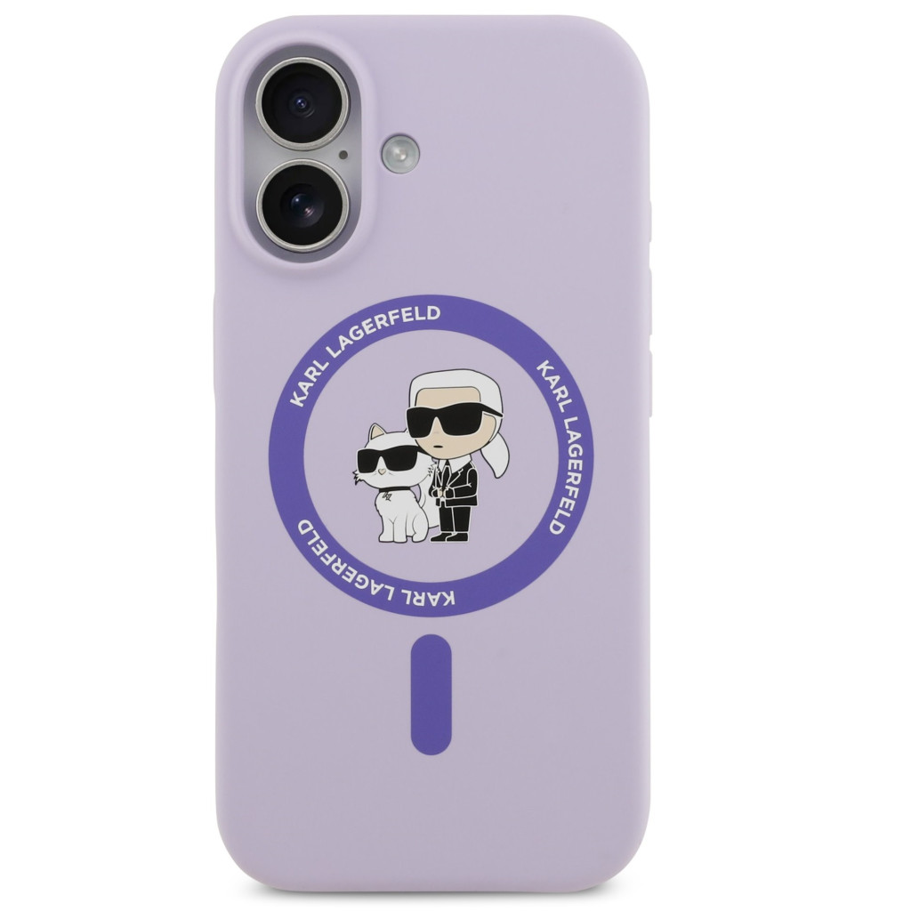 Karl Lagerfeld Liquid Silicone Karl and Choupette MagSafe iPhone 17 hátlap tok, lila