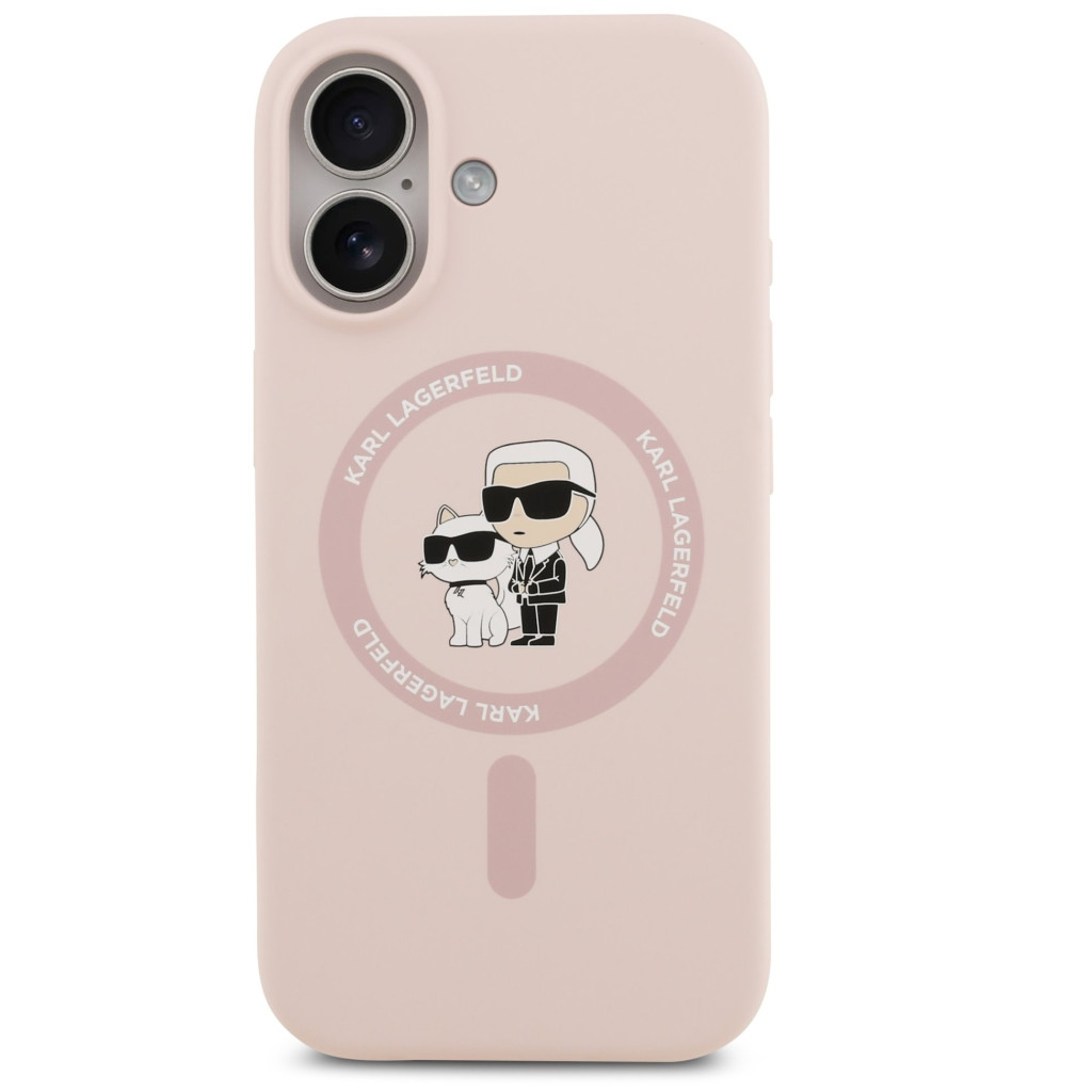 Karl Lagerfeld Liquid Silicone Karl and Choupette MagSafe iPhone 17 hátlap tok, rózsaszín