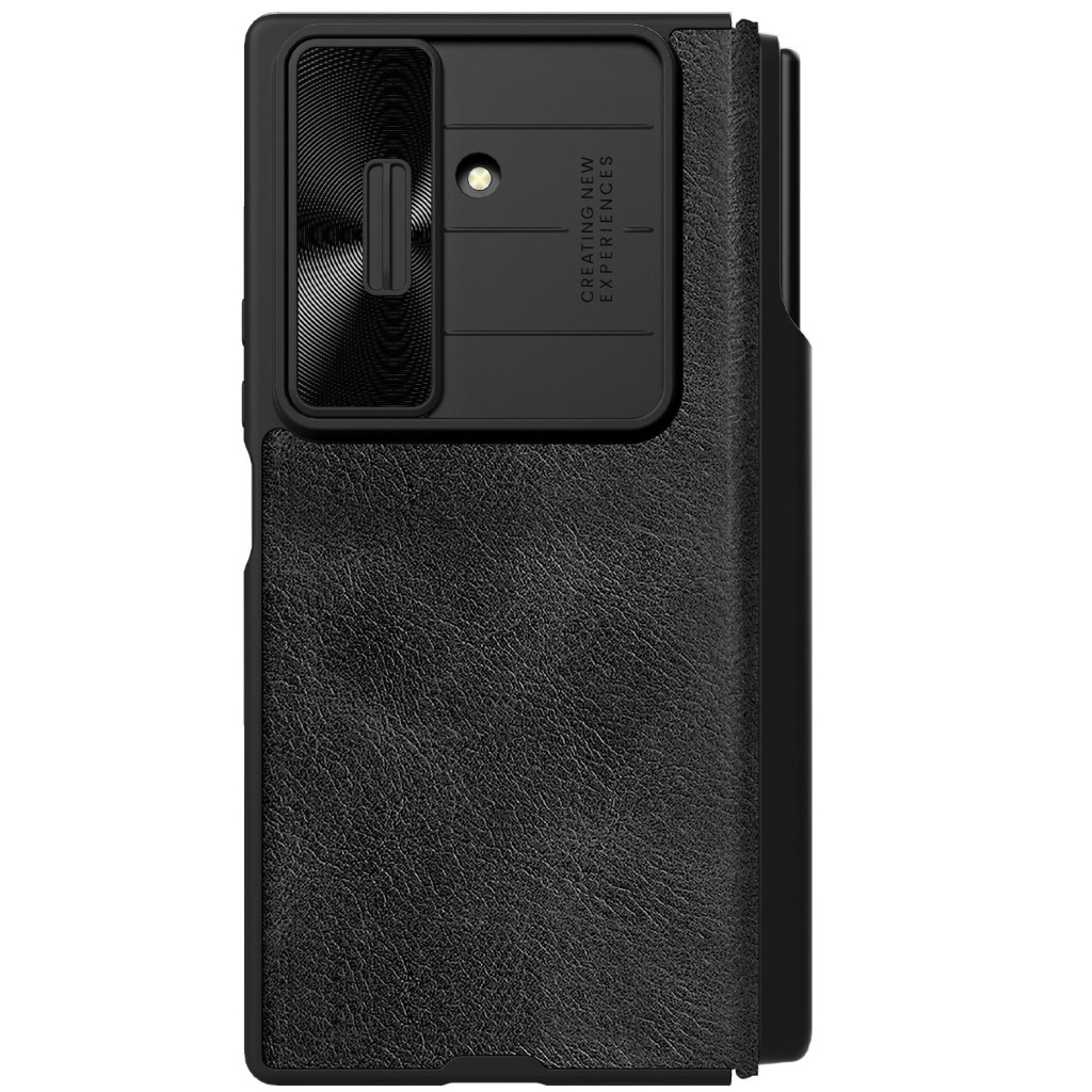 Nillkin Qin Pro Samsung Galaxy Z Fold 7 bőr flip tok S-Pen / kártyatartóval, csúsztatható kameravédővel, fekete