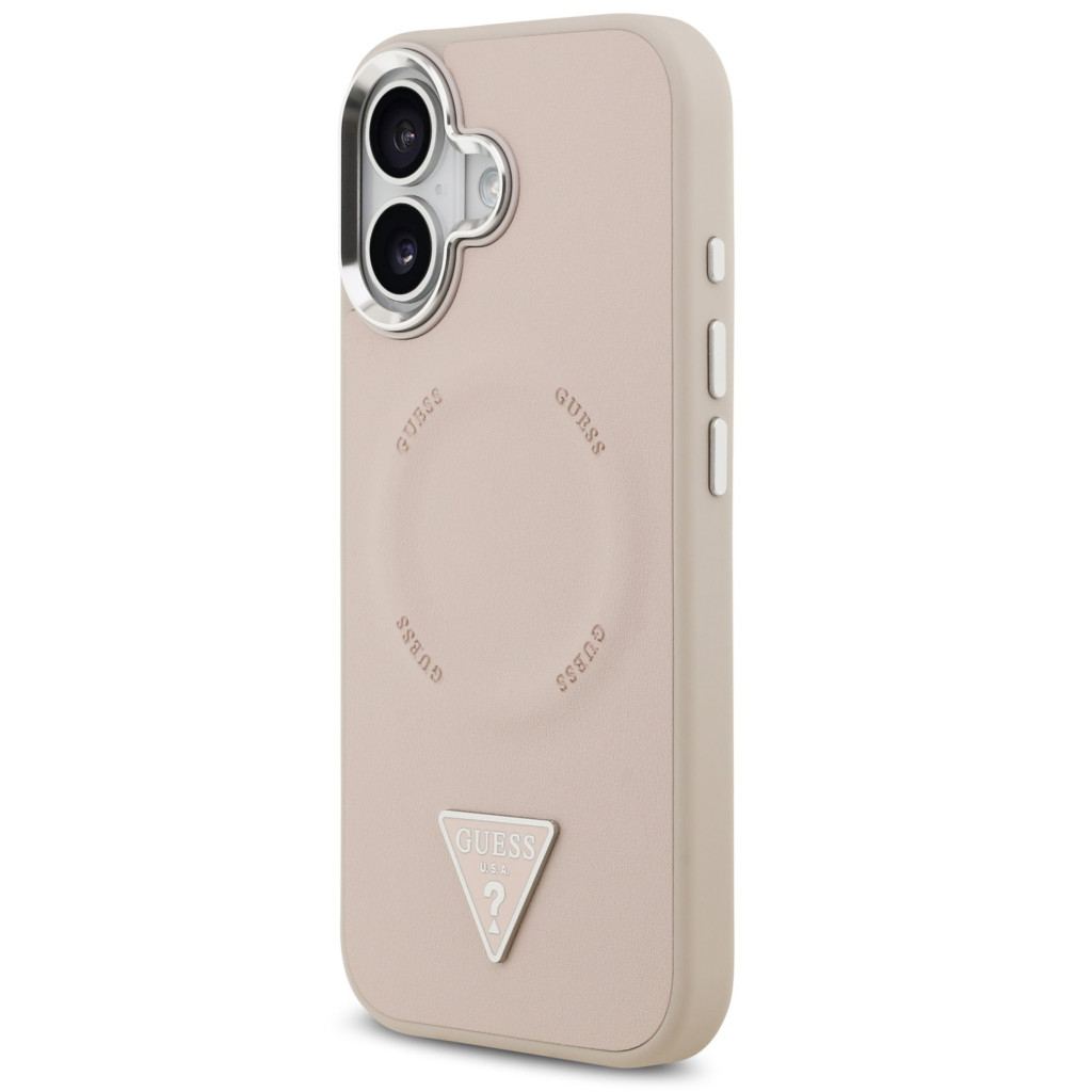 Guess PU Leather Triangle Logo Apple iPhone 17 MagSafe hátlap tok, rózsaszín