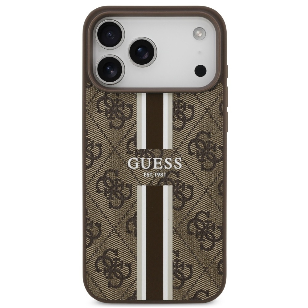 Guess 4G Printed Stripes Apple iPhone 17 Pro Max MagSafe hátlap tok, barna