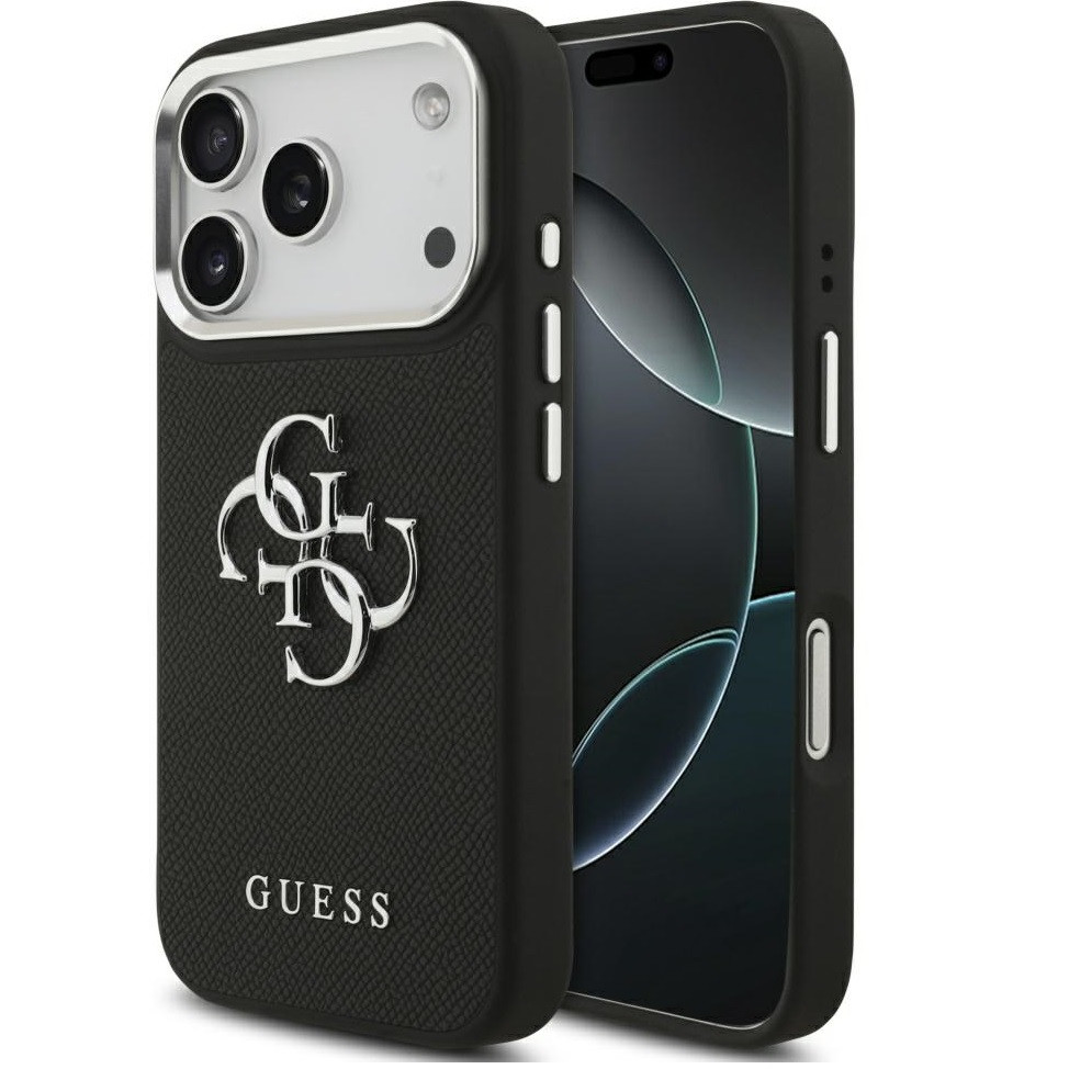 Guess Big 4G Classic Logo Apple iPhone 17 Pro Max hátlap tok, fekete-ezüst