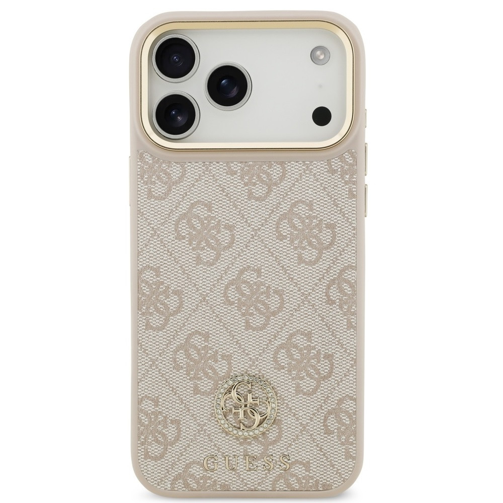 Guess 4G Strass Logo Apple iPhone 17 Pro MagSafe tok kameravédő peremmel, rózsaszín-arany