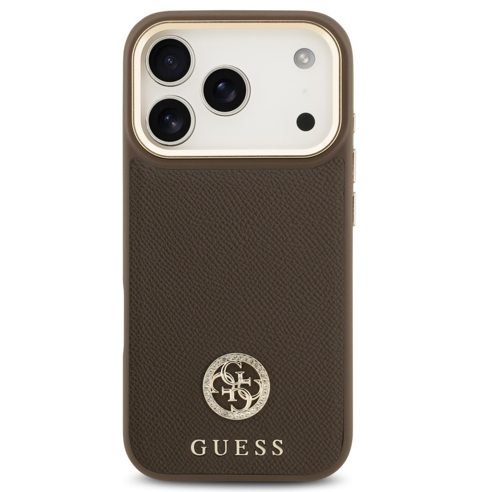 Guess 4G Grained Strass Logo Apple iPhone 17 Pro Max MagSafe tok kameravédő peremmel, barna-arany