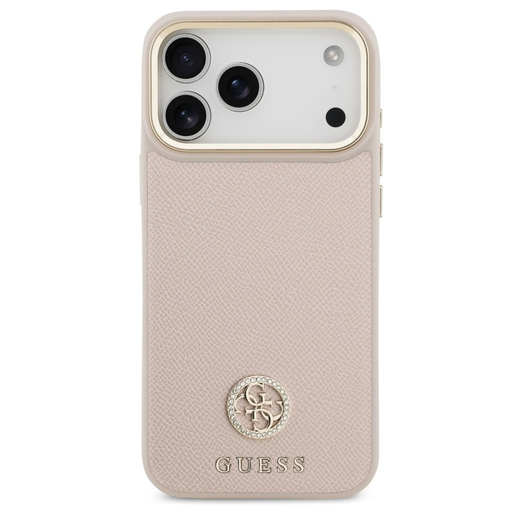 Guess 4G Grained Strass Logo Apple iPhone 17 Pro Max MagSafe tok kameravédő peremmel, rózsaszín-arany