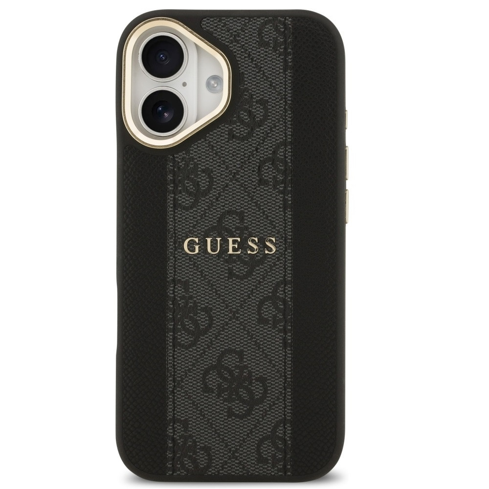 Guess 4G Stripe Apple iPhone 17 MagSafe tok kameravédő kerettel, fekete-arany