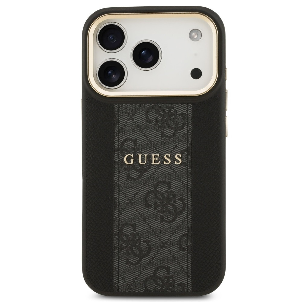 Guess 4G Stripe Apple iPhone 17 Pro MagSafe tok kameravédő kerettel, fekete-arany