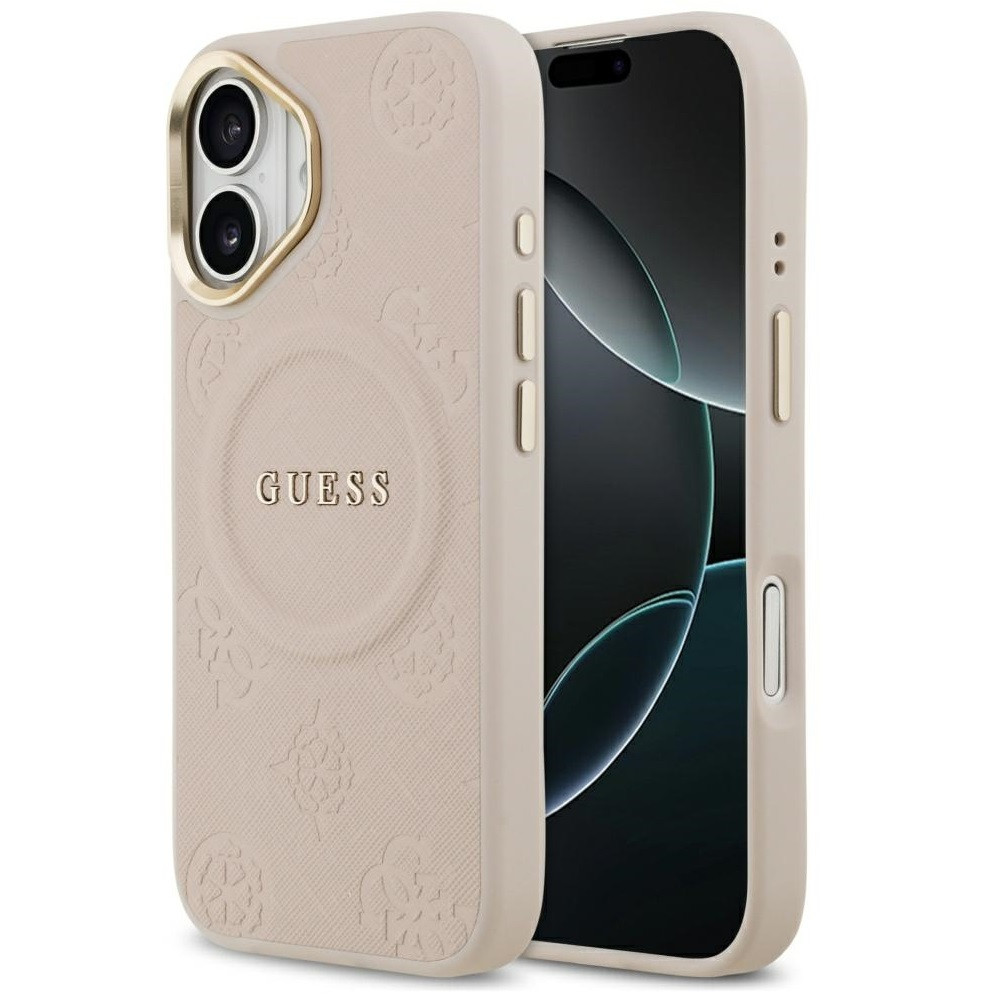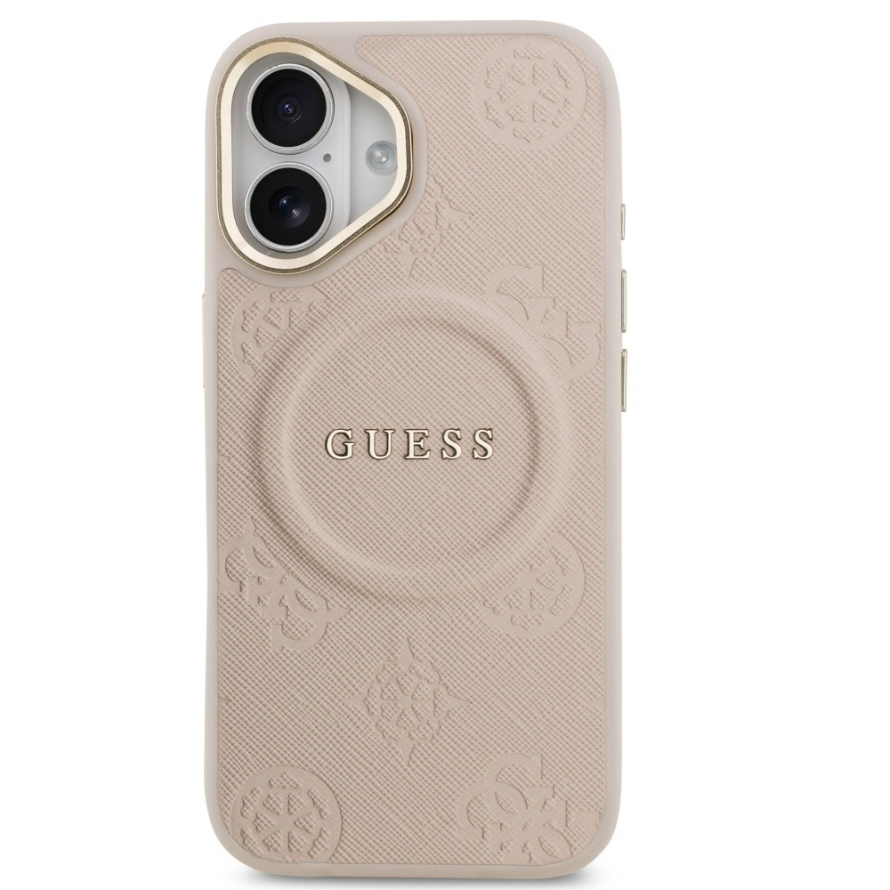 Guess Peony Hot Stamp Apple iPhone 17 MagSafe tok kameravédő peremmel, rózsaszín-arany