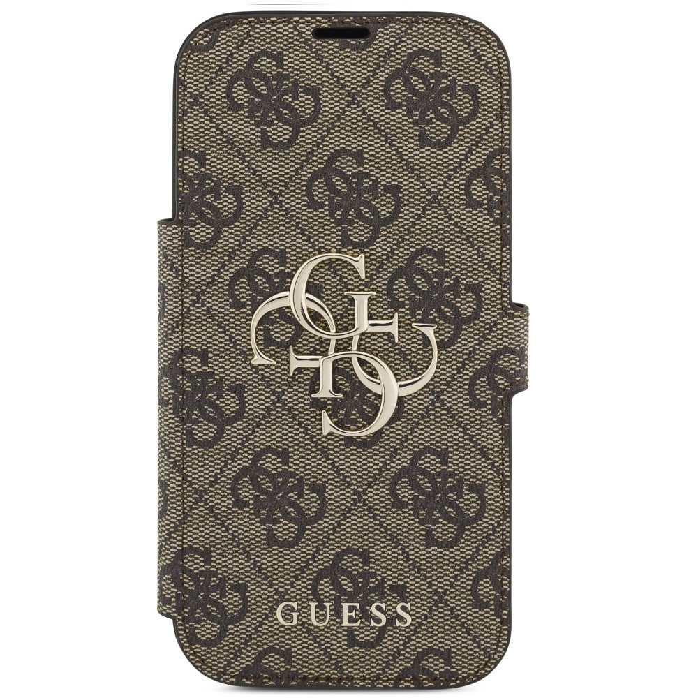 Guess Book 4G Metal Logo Apple iPhone 17 Pro oldalra nyíló tok kártyatartóval, barna